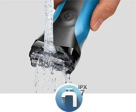 The Braun Series 3 is IPX7 certified - it could be submerged in 5 meter deep water without a problem. Which means you can comfortably rinse it under running water for easy cleaning.