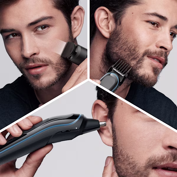9-in-1: the Braun MGK5 men’s Beard trimmer and Body groomer kit trims any length of hair. From beard, face, and ear, to nose trimming, body trimming and manscaping.